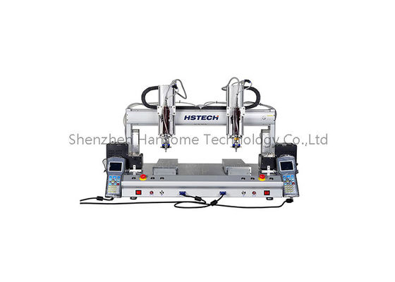 Questo avanzato sistema di saldatura automatica vanta una configurazione a due tavoli, con una sola testa di saldatura dotata di due saldature a temperatura controllata indipendentemente.Anche se non ha una capacità di rotazione, è stato accuratamente progettato sia per le operazioni di saldatura delle schede PCB standard che per le applicazioni della linea di produzione.miglioramento drammatico dell'efficienza della saldaturaE' alimentato da una combinazione di pressione d'aria ed elettricita' e include una intuitiva confezione per la programmazione manuale punto per punto.che poi passa senza problemi alla saldatura automatica al completamento della programmazione.